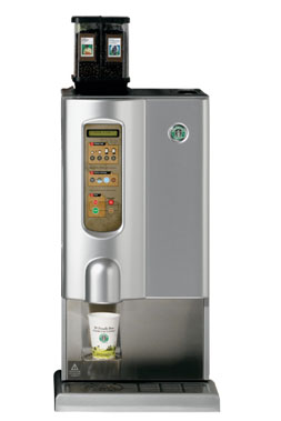 You don't have to hire a Barista to brew Starbucks coffee in your office. The Starbucks Interactive Cup is a single-cup machine that allows your staff to enjoy a fresh cup of real Starbucks coffee -- without leaving the office! Two hoppers support two different selections of whole bean coffee. The I-Cup also offers hot cocoa and hot water for tea drinkers.
